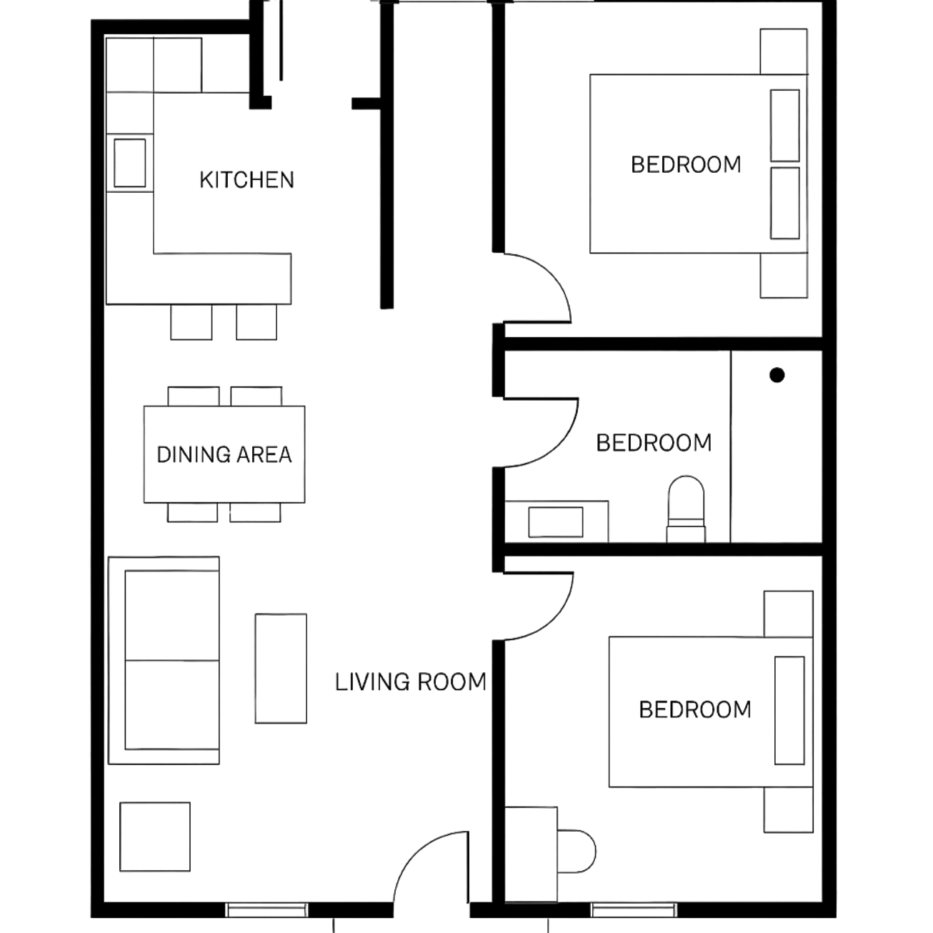שני חדרי שינה נוספים מאפשרים ניצול מלא של השטח: ילדים, מתבגרים או חדר עבודה. המבנה מספק תשתיות מובנות (שקעים, תאורה, אוורור) ומרחב מספיק לשולחן, מיטה וארון – כל זאת תוך בידוד תרמי ואקוסטי איכותי.